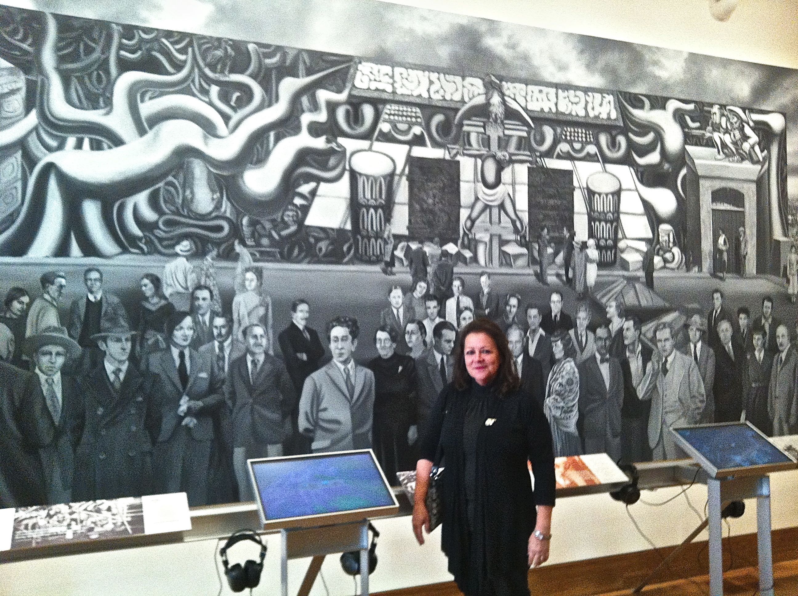 Barbara Carrasco before the tribute to Siqueiros she co-created with John Valadez
