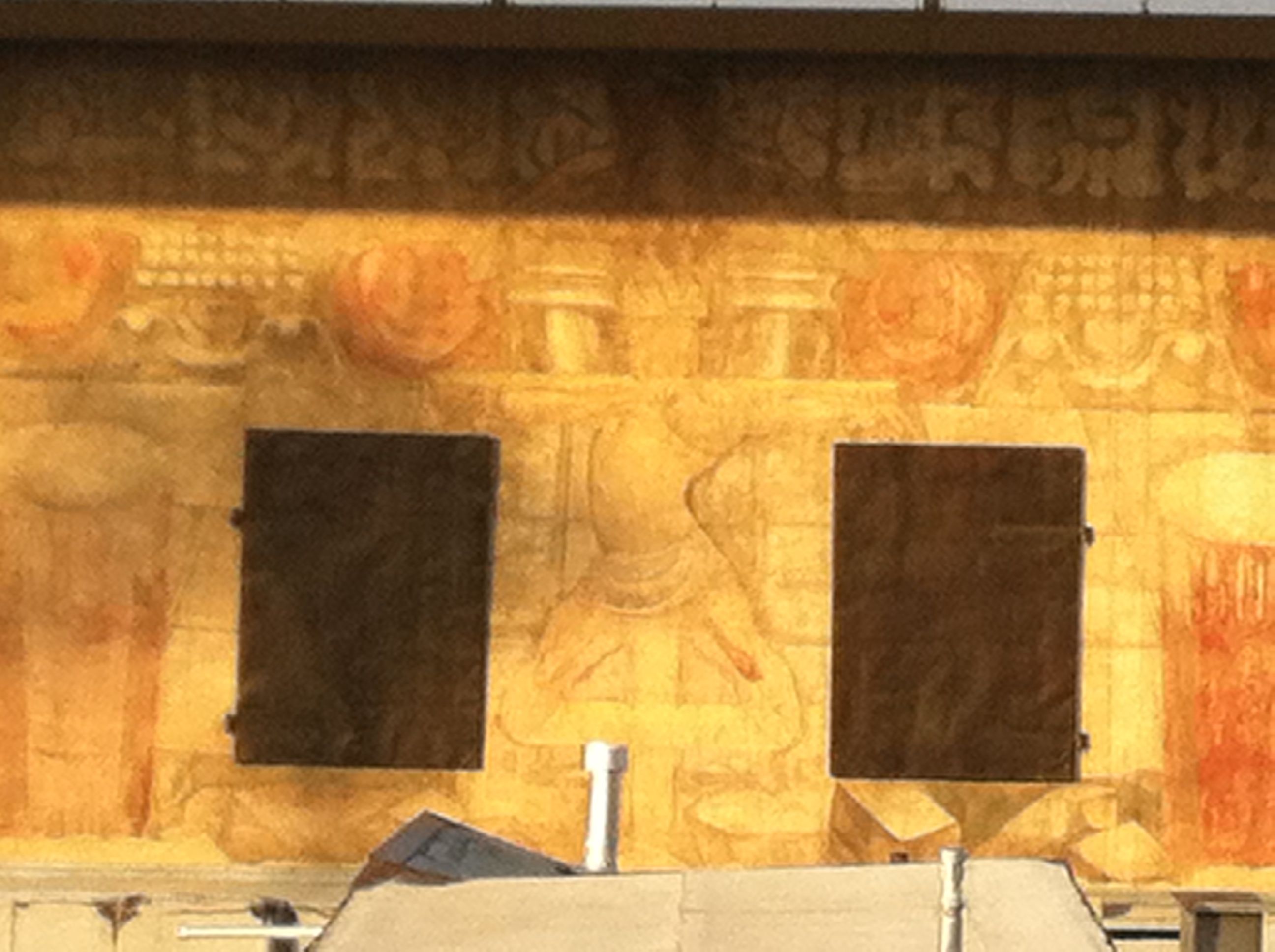 It is 1932 and 2012 at once: before us, in its ghostly-almost-material state, the mural is simultaneously revealed, whitewashed and re-revealed in an endless cycle.